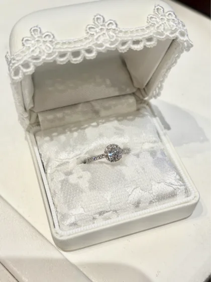 いきなり婚約指輪を購入するのではなく、プロポーズ成功後に彼女と二人で一緒にご来店いただき、じっくりとお好きなデザインをお選びいただけます。